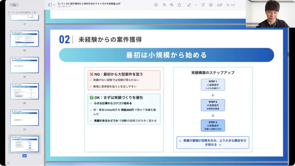 まずは小さな案件から実績を作る